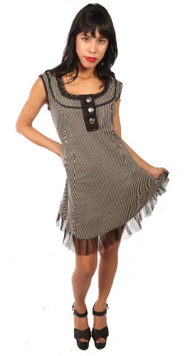 Fun House Victorian Circus Dress Black Silver Stripes Womens Sizes: Small/Medium