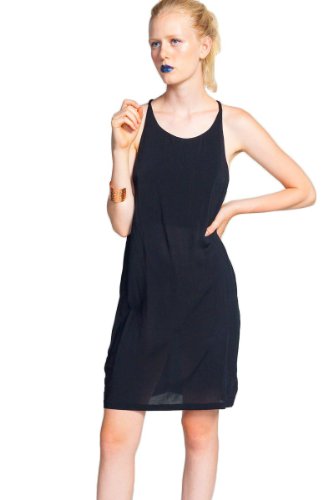Minimal racerback tank dress. Drapes really well off the body. Back is super sexy with a simple twisted strap.