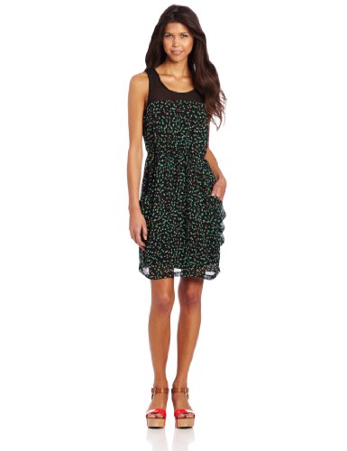 Kensie Women's Sketched Spots Dress, Black Combo, Large