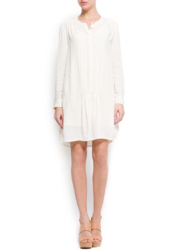 Mango Women's Pin-Tuck Shirt Dress, Neutral, 2