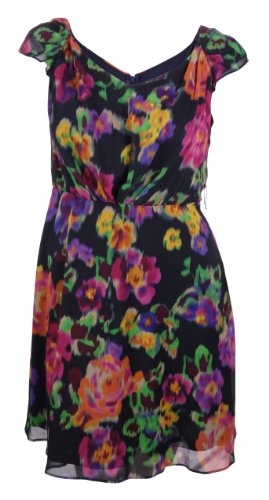 This flirty floral Tiana B. dress offers a touch of feminine details that allow for ease of wear and travel. Features include: just below knee length, elastic natural waistline, softened ballet v-neck, cap sleeves, back zipper, flattering floral design.
