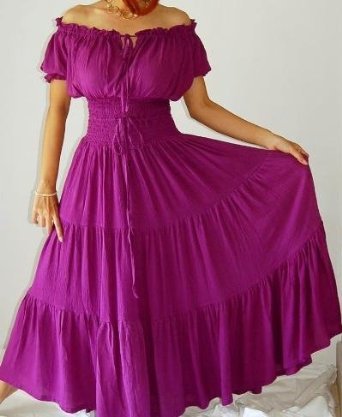 VIOLET DRESS PEASANT ETHNIC SMOCKED - FITS - S M L - A755A LOTUSTRADERS