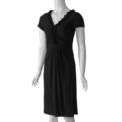 A jersey knit dress by Adi Designs is the perfect choice for any occasion. A stretchy dress featuring a ruffled trim around the neckline and down the center front. Women's apparel boasts a pleated skirt that is figure flattering. Measurement taken from size small. Please note that measurements are approximate and may vary by size.