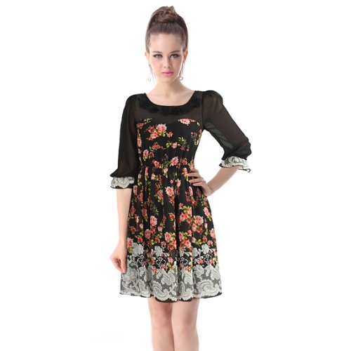 Ever Pretty Floral Printed Chiffon Round Neckline Casual Dress 02388, HE02388BK14, Black, 12US