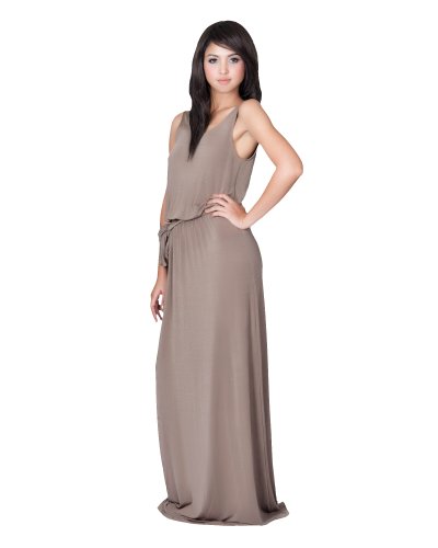Koh Koh Women's Backless Long Empire Cocktail Evening Maxi Dress Gown - Small - Latte