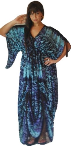 Lotustraders Caftan Dress Lagenlook OS L-4X Navy Blue D258