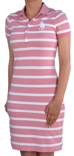 Ralph Lauren Sport Women's Big Pony Striped Skinny Polo Dress (Pink/White) (Small)
