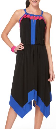 Sangria Colorblock Trim Handkerchief Hem Dress BLACK MULTI 4
