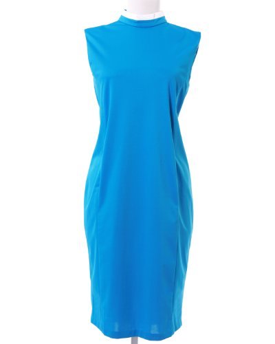 Contrast trim at the high neck and subtle draping at the back. On-seam pockets at front and hidden zip at back. Very figure friendly dress.Color: Acid Blue
