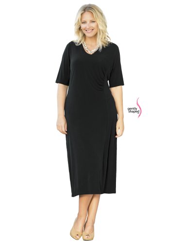 Ulla Popken Plus Size Matte Jersey Ruched Dress - Black, 20/22