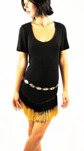 Fringe Dyed by Hand. The color is Honey Yellow and it can be worn as a T-Shirt or a Dress. Great for going out at night or to special events. Make a statement with Great Day which Design and Made In Los Angeles. It is 80% Cotton and 20% Lycra.