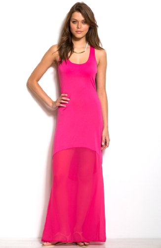 I was disappointed in this maxi dress. The material is very thin and see through..you can totally see my underwear and bra. I'm gonna try my nude undies and see if it makes much of a difference, but really, I'm not impressed and will probably return it. It's very long and fits true to size. Try Guess maxi dresses..I had better luck with theirs!