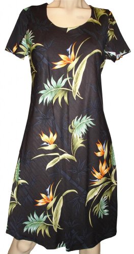 Bamboo Paradise Hawaiian Dress - Womens Hawaiian Dress - Aloha Dress - Hawaiian Clothing - 100% Rayon Black Large