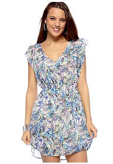 From Manufacturer: Embrace this season's bold patterns in this striking printed dress. It features cold shoulder sleeves, a figure-flattering cinched waist and a back-button keyhole closure. Plus, its overall colorful brush stroke pattern is designed to really make a statement. Imported