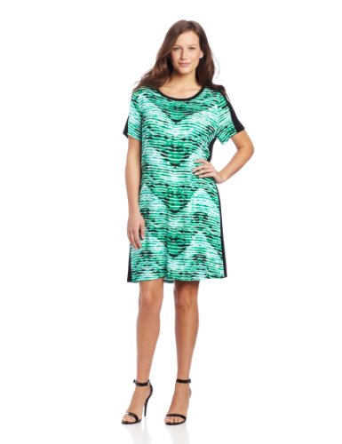 Calvin Klein Women's Printed T Shirt Dress, Emerald/Nile Multi, 0X