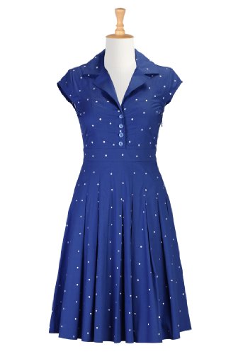 eShakti Women's Dotted retro poplin shirtdress S-4 Regular Royal blue/white