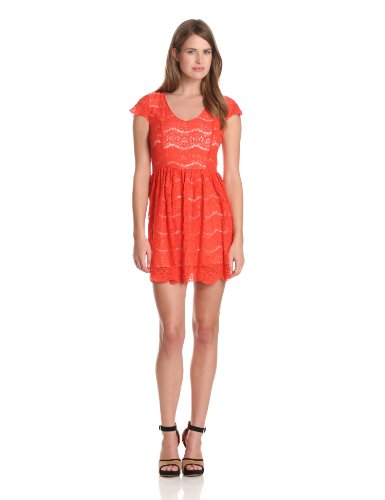 Kensie Women's Floral Lace Dress, Terracotta Clay Combo, Large