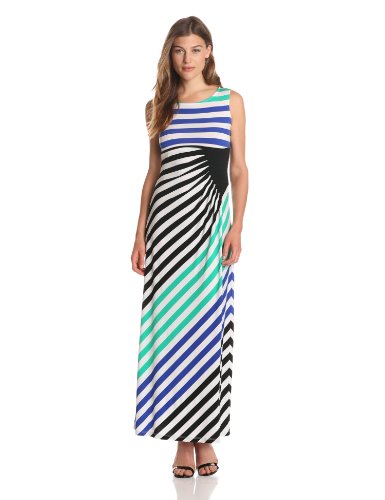 London Times Women's Matte Jersey Stripe Maxi Dress, Blue Multi, 16