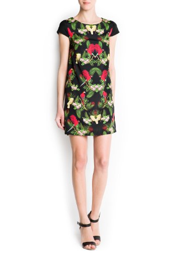 Mango Women's Tropical Print Straight-Cut Dress, Black, 4