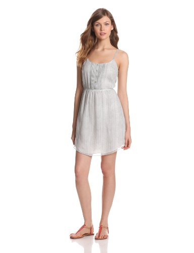 Quiksilver women's hand drawn herringbone dress silk chiffon dress with front button placket and pleating detail at bodice, 36 inches hips body length