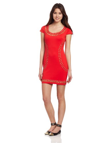 Rampage Juniors Ponte Dress With Studs, Poppy, X-Small