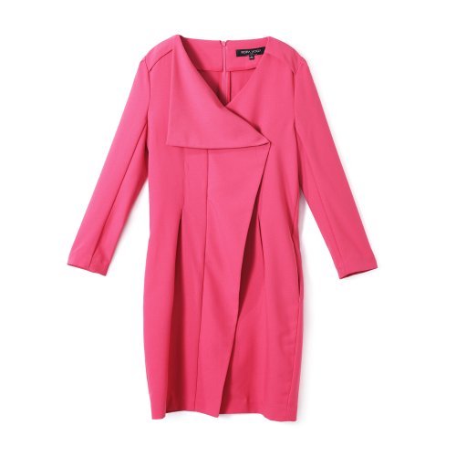 It's a slim long sleeves dress. Solid color speaks of the grace and elegance of the garment. Classic slim black, youthful and active pink, deep and wisdom blue. Unique V neckline, Flounces go down along the front body, completely expressing the charm and softness of a lady. Gathering pleats at the back waist looks slender. Center back hidden zipper is nice and practical. Seam pockets are inner and secretive. A very nice dress for autumn and spring. Also can put on a coat over the dress in winter.