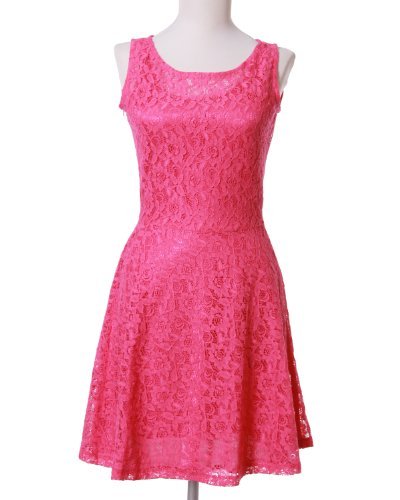This stretch-lace dress features a scoop neck. Comfortable and easy to wear. Great for casual or special occasion events. Lined.Color: Bright rose.