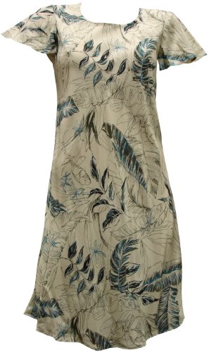 Short Tank Dress - Women's Heliconia Sketch Cap Sleeve A Line Silhouette Hawaiian Aloha Pullover Rayon Dress in Cream - XS Short Tank Dress - Pacific Orchid Hawaiian Aloha A-Line Style 165 Pull-Over Dress