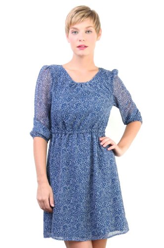 Tulle Women's 3/4 Sleeve Mid-Thigh Dress with Keyhold at Back XS Navy Print