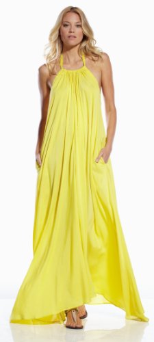 An Elan Usa Maxi Halter Tie Flowy Long Dress (RY597) (YELLOW, MEDIUM)