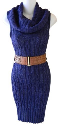 Baby Phat Women's Cable Knit Sweater Dress (X-Large, Midnight Blue)
