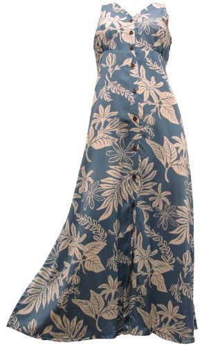 Button Front Long Tank - Tiare Empire Waist Adjustable Back Tie Hawaiian Aloha Rayon Dress in Pewter Blue - XL
