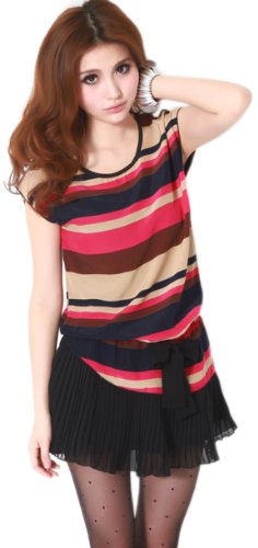 This mix and match skirt has been crafted from chiffon fabric, pied top with classic striped print to the main, sleeveless styling for its taliored cropping, mini fitted overskirt to the bottom, wild pleated design mainly, all for easy-to-wear elegance.
