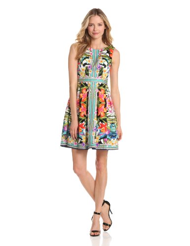Maggy London Women's Mirror Print Fit And Flare Dress, Coral, 8