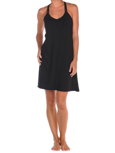 Our easy fit A-line dress is built with comfort and support to be worn during the day, with one of our great cardigans, or a night out. The self banded feminine neckline runs all the way around turning into straps that garland the wearer to accentuate the beauty of each woman. This dress is a must have for those warm summer days or that Winter getaway. ? Bamboo and Lycra ? 360º Shelf Bra with insets allowing the Wearer to add bra cups ? Carved racer back shape