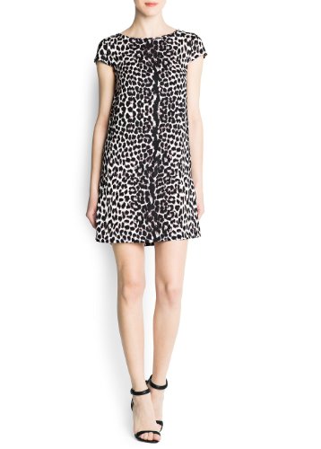 Straight-cut sheer dress with leopard print, round neck and cap sleeves. Pardo
