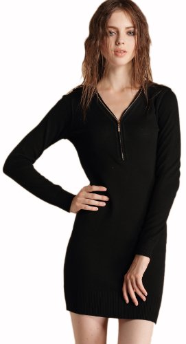 The basic cut for this knitted dress is designed with low-cut V neck to the front, metal zipper fastening instead of traditional closing, wide-cut epaulet with candy color brass accent detailing, all for a gentle and feminine look.