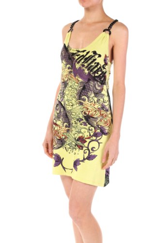 Ed Hardy Women's Sweater Chain Tank Dress crw-05019 Yellow (Small, Yellow)