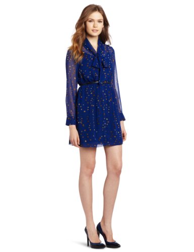 Kensie Women's Painted Dots Dress, Blue Combo, Medium