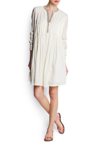 Mango Women's Beaded Cotton Dress, Beige, 4
