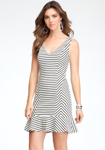 bebe Stripe V-neck Flounce Dress Day Dresses White/black-s