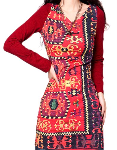 Chendvol Abstract Digital Printing V Neckline Slim Long Dress for Women (China-One Size, Red)