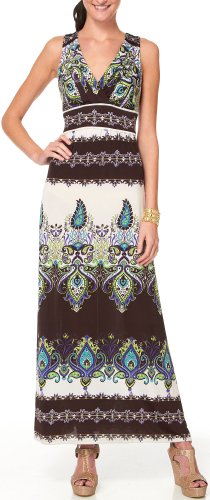 Corey P. Paisley Pleated Neckline Maxi Dress BROWN MULTI Medium