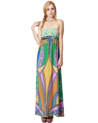 Flying Tomato Women's Bohemian Maxi Tube Dress Medium Navy