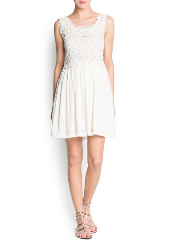Mango Women's Guipure Upper Dress, Beige, 2