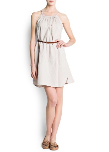 Mango Women's Linen Cotton-Blend Dress, Stone, 8