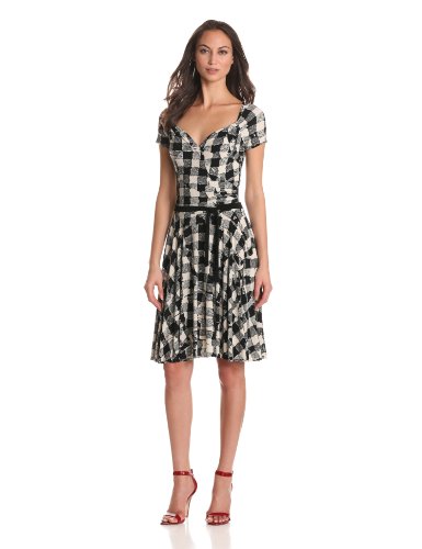 KAMALIKULTURE Women's Short Sleeve Sweetheart Flair Dress, Black/White, X-Large