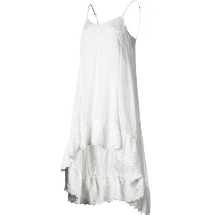The light, lacy, and summery-breeze Billabong Women's Salt Water Dress has plenty of ethereal beauty fit for the beach or a night out. Ruffles, lace, embroidery, scooped back, and a high-low hemline give it oodles of sweet, sexy appeal.Product Features