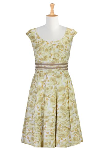 Pretty pleats detail the scooped neck of our stretch cotton print dress, box-pleated and nipped in at the contrast tipped trim waist for a figuring-flattering silhouette, and finished with pintucked pleat panels at the hem.