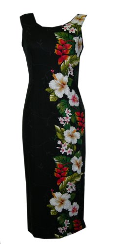 Jade Fashions Inc. Women's Hawaiian Hibiscus Long Dress-Black-S